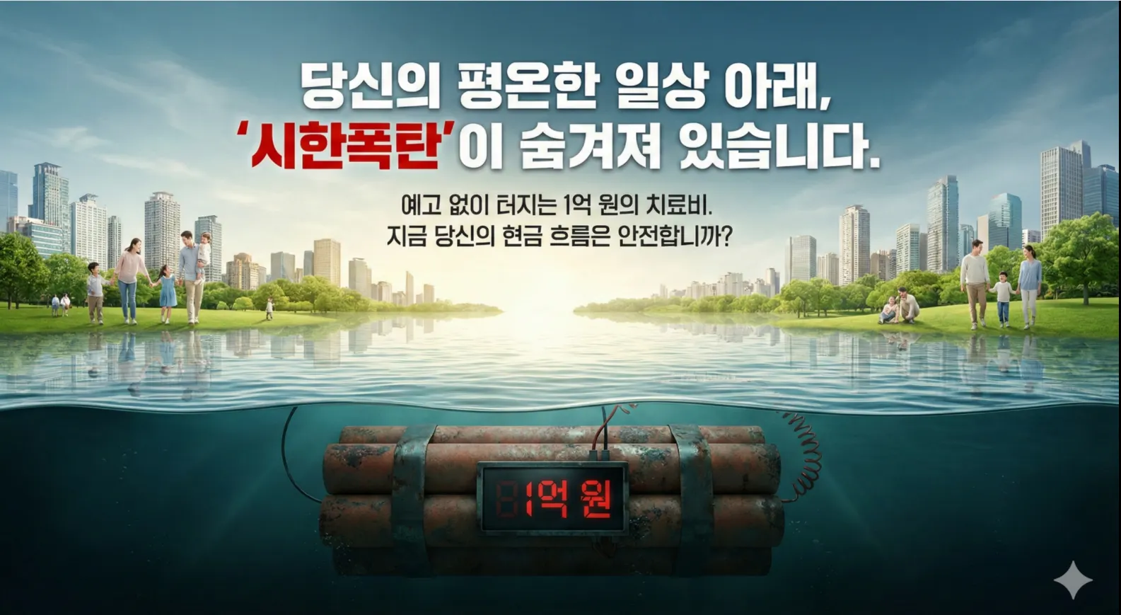 시스템이 없는 삶 (불안의 극대화): 어느 날 갑자기 날아온 '암 진단비 1억 원'이라는 청구서는 당신의 현금 흐름을 파괴하는 재무적 폭탄입니다. 언제 터질지 모르는 폭탄을 안고 사는 뇌는 늘 만성적인 스트레스에 시달립니다.