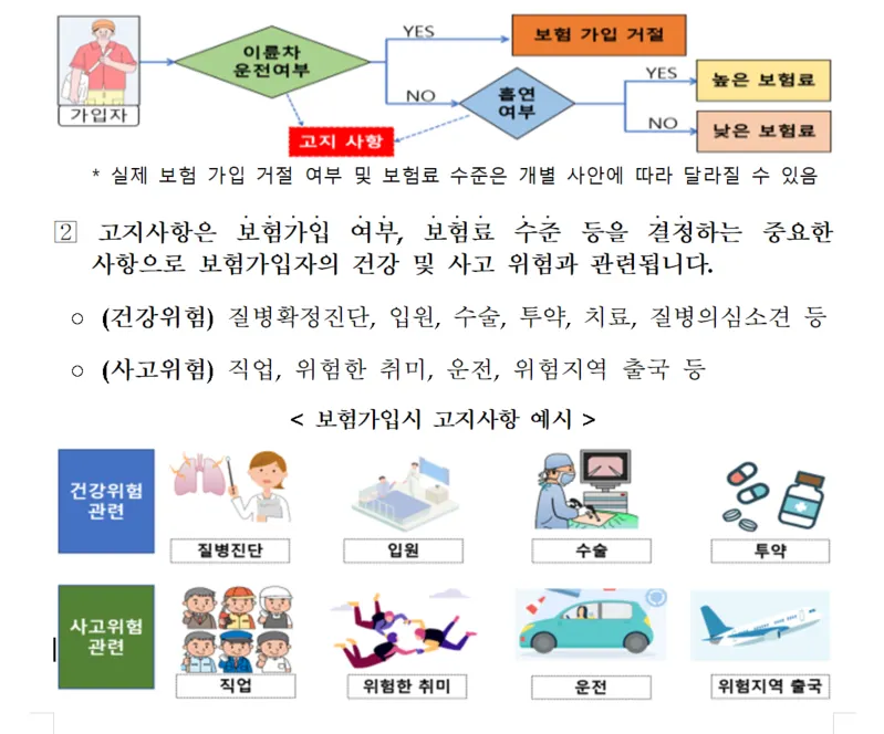 < 고지사항에 따른 보험가입 및 보험료 결정 예시* >
