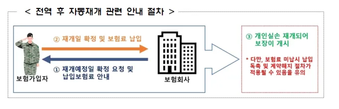 넷째, 중지된 보험계약은 원칙적으로 계약자가 중지 당시 기재한 재개예정일(전역예정일)에