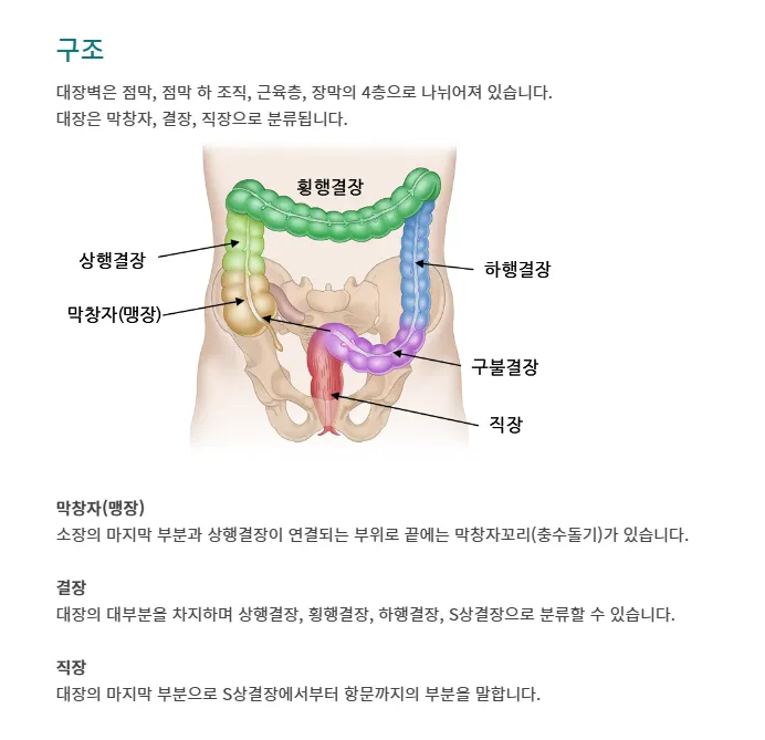 이 중 맹장, 결장, 직장에 생기는 악성 종양을 대장암이라고 합니다.